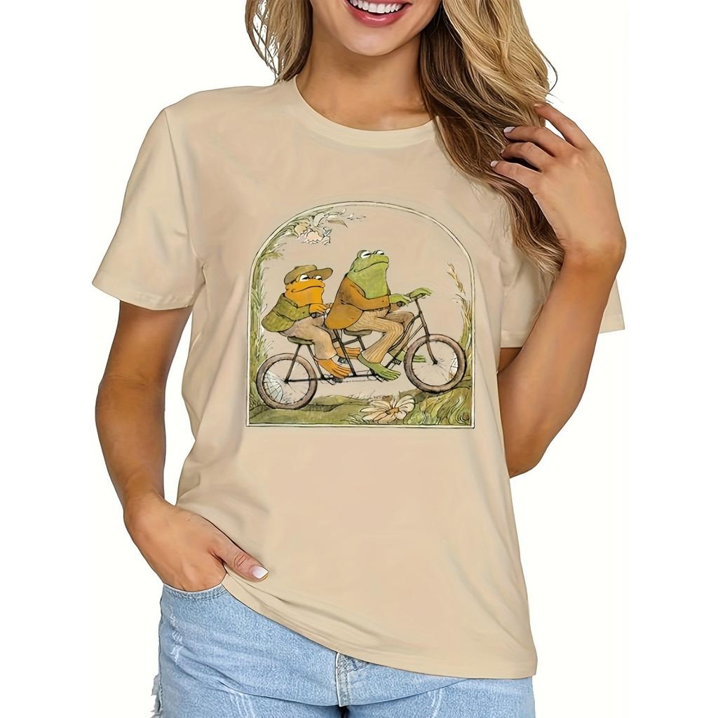 Women's Spring and Summer Frog and Toad Print Casual Loose Round Neck Short-sleeved T-shirt