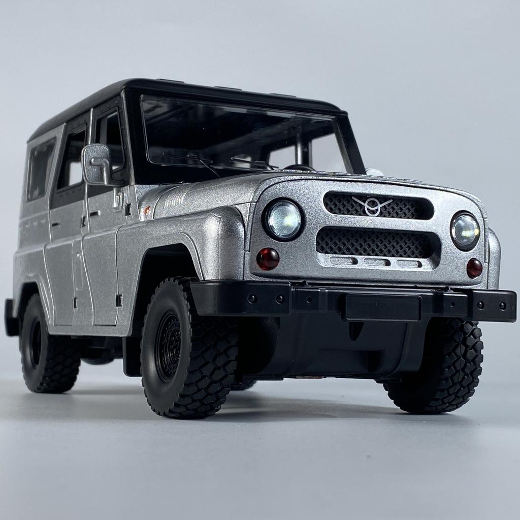 1:18 Rosyjski UAZ Hunter Jeep Metalowy Odlew SUV Model Terenowy Dźwięk i Światło Pull Back Zabawki Kolekcja Prezent Dla Przyjaciół