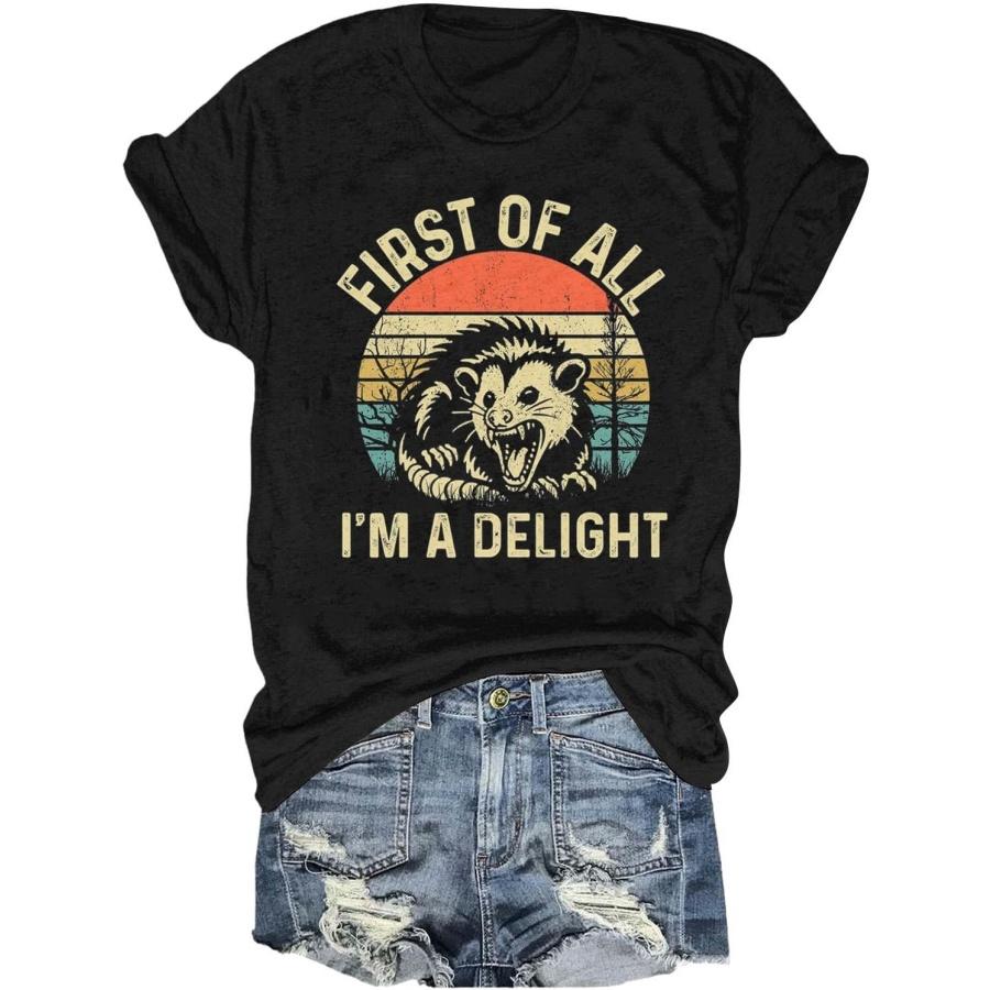 First of All I'm a Delight Shirt Opossum Tshirt Possum Lover Gifts Funny Sarcastic Shirts Funny Saying Tshirt