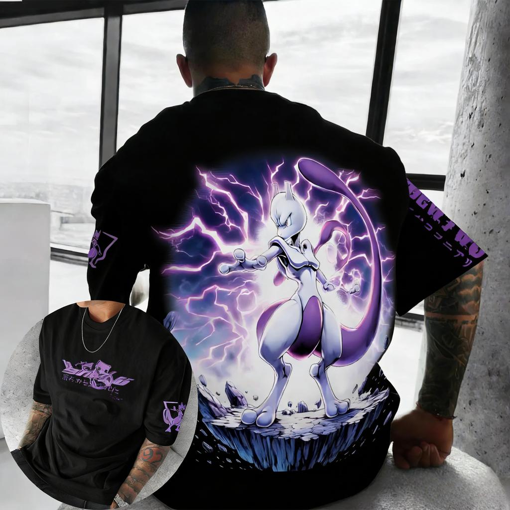 Men's and Women's Summer Pure Cotton T-shirt 2026 New Mewtwo Printed Street Hip Hop Casual Loose Y2K Parent Child Top