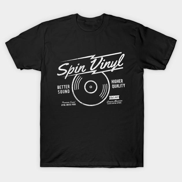 Men Black Print T-shirt Spin Vinyl Retro Record No-Cut Transfer Paper Print Cotton Tshirt
