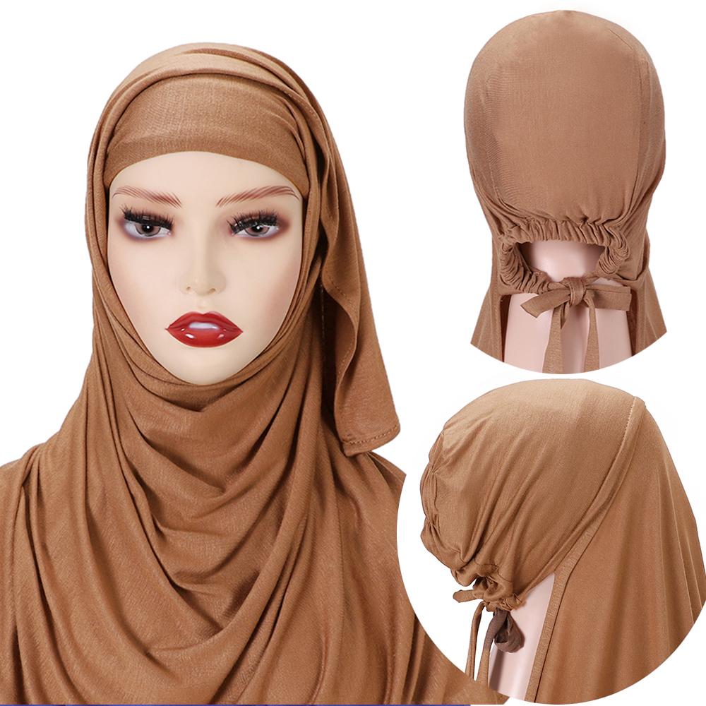 Muslim Modal Adjustable Scarf Rope Cap Jersey Lnstant Hijab Soft Turban Plain Shawl Solid Headband Wraps Foulard Femme