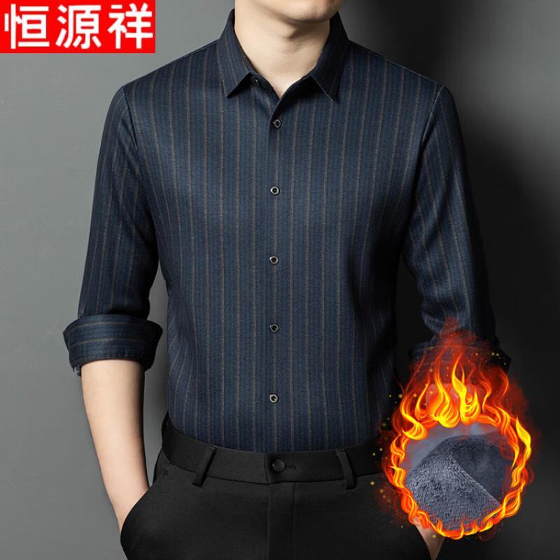 Męska ciepła koszula w paski z mieszanki wełny i jedwabiu Hengyuanxiang