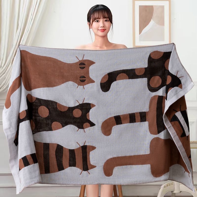 70x140cm Bath Towel Cotton Gauze Adult Household Absorbent No Lint Bath Towel Cute Soft Cartoon Pure Cotton Sand Bath Towel