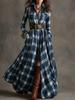 Damska francuska vintage sukienka w kratę wyszczuplająca asymetryczna - Nowy design