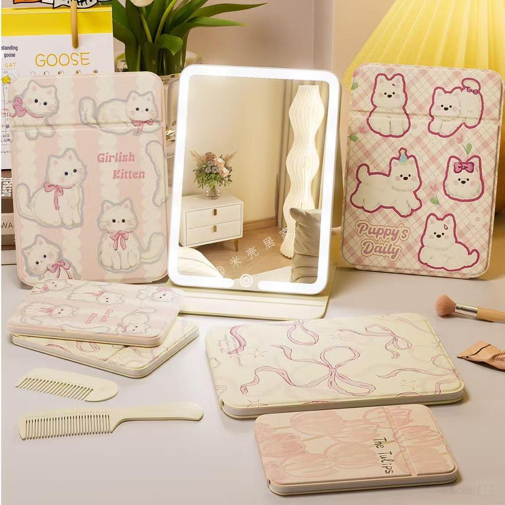 Składane lusterko kosmetyczne LED HD z kreskówkowym motywem i podświetleniem
