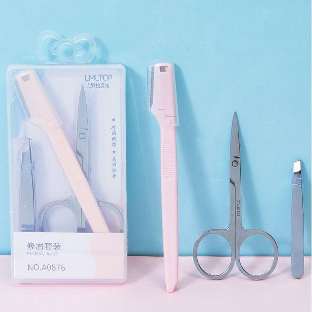 Charyeina - Set: Stainless Steel Makeup Scissors + Tweezers + Razor