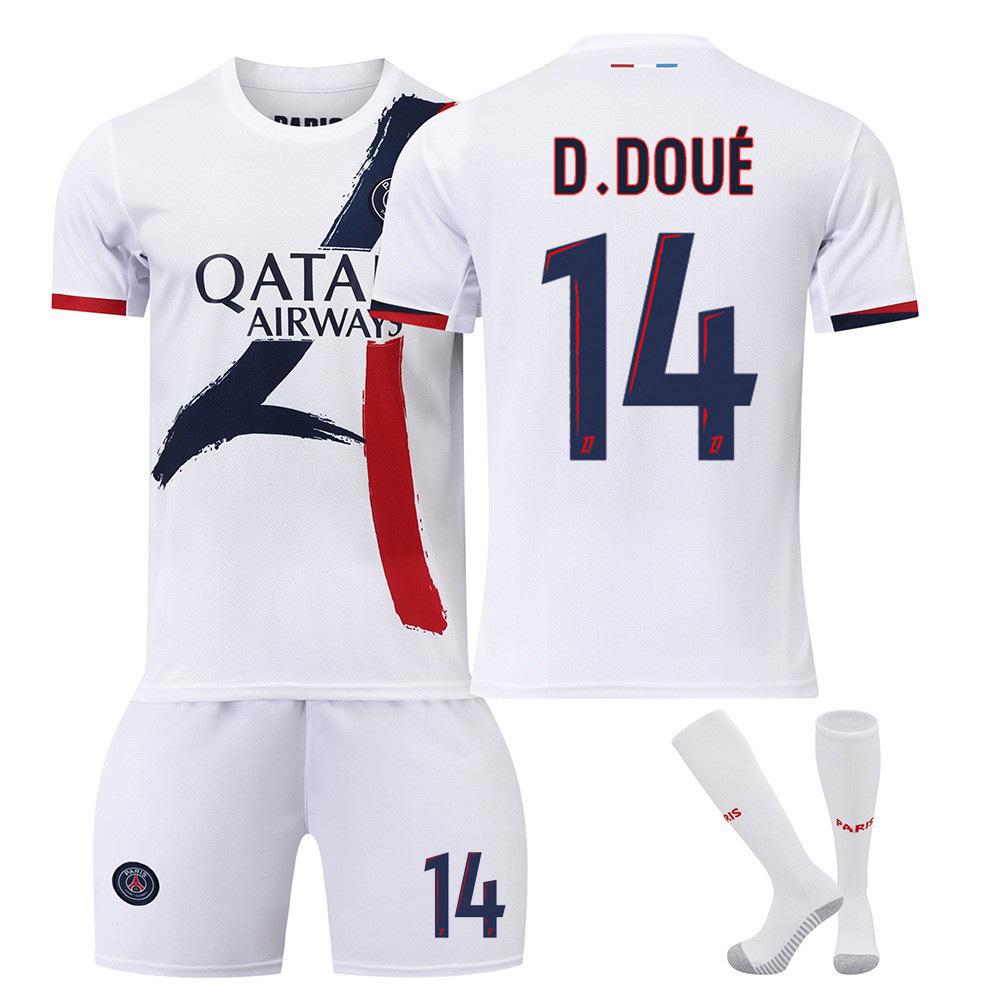 Nastolatki Dzieci Dorośli Personalizowane Nazwisko Zestawy Piłkarskie 24/25 PSG Wyjazdowe #14 D.Doué Sportowy Zestaw Koszulki Treningowej z Skarpetkami