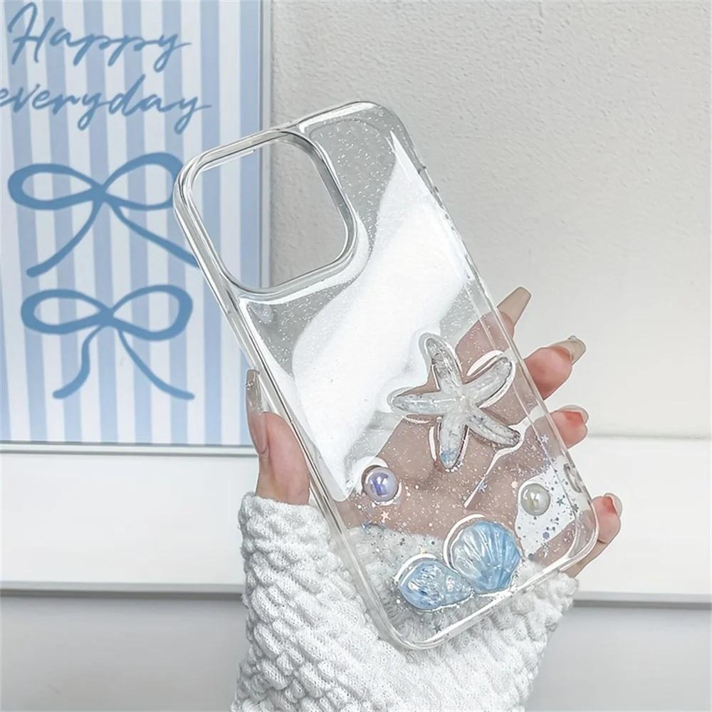 Clear Handmade Glitter Bling Shell Starfish Sequin Phone Case For iPhone 17 Air 16 15 13 12 11 Pro Max 14 Plus XR XS Soft Cover