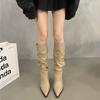 Pleated thin heel essential boots pointed pile Spice girl boots heightening knight boots show long legs