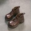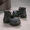 Johnature Skórzane Retro Czółenka na Grubej Platformie z Obcasem Okrągły Nosek Zapięcie na Rzepy Damskie Buty Platformowe