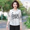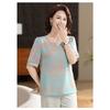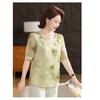 Women's Chinese Style Round Neck Blouse Half Sleeve Watercolor Pattern Frog Button Elegant Top for Daily