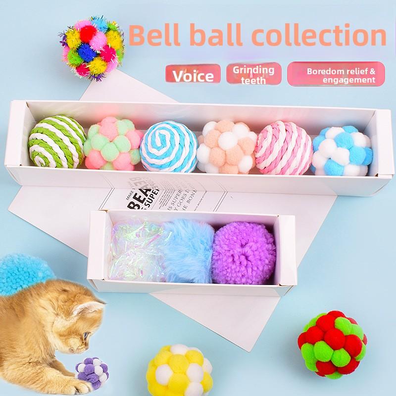 Zabawka dla kota - Elastyczna piłka - Ręcznie robiona pluszowa piłka z dzwoneczkiem - Zestaw prezentowy - Samodzielna piłka dla kota, która jest wytrzymała i odporna na drapanie i gryzienie