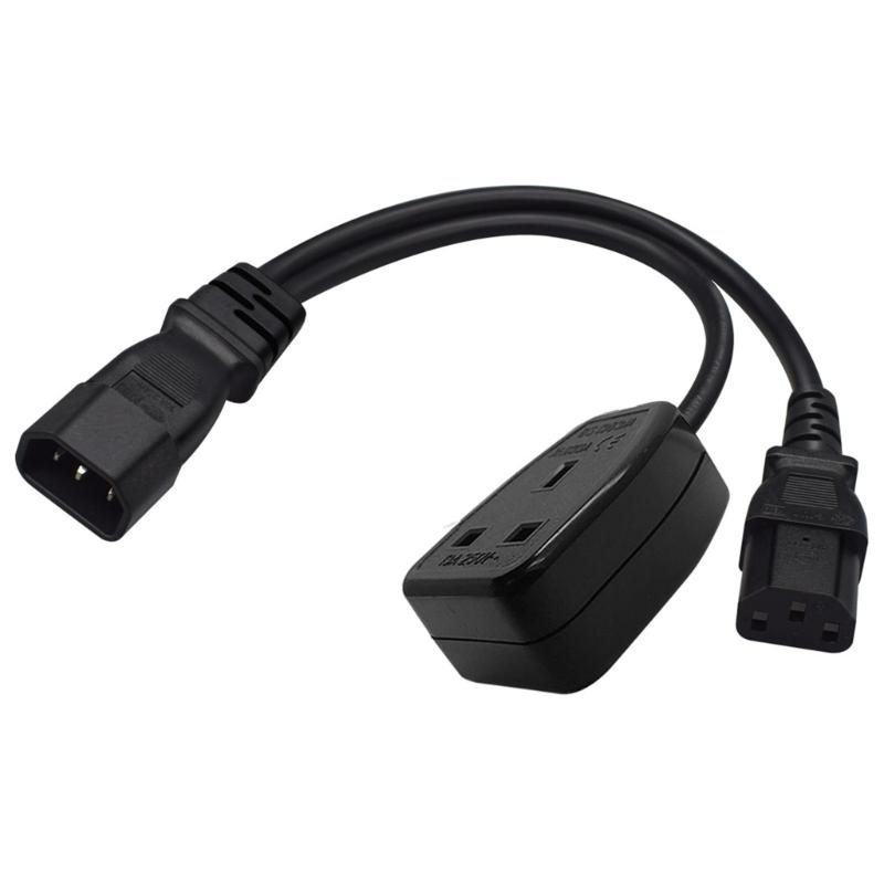 3-pin IEC320-C14 Male Plug to IEC320-C13+UK13A Female Adapter Cord Y-splitter Power Supply Converter Cable Line