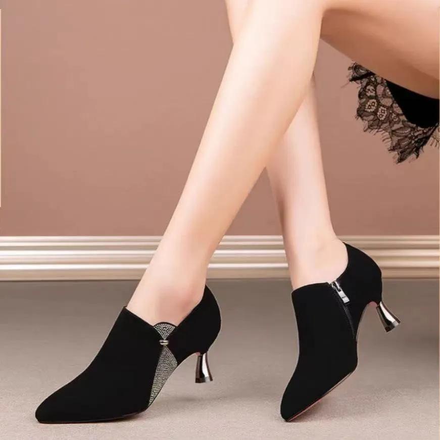zapatos de mujer women fashion pointed toe black spring & summer slip on ankle shoes lady classic comfort crystal shoes ga683