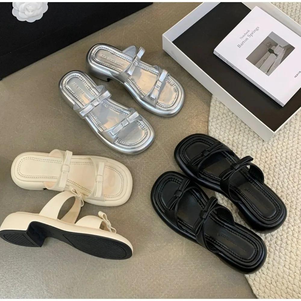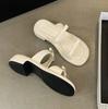 Nowe Letnie Damskie Kapcie 2025 Stylowe Odkryte Palce Niski Obcas Srebrne Damskie Wygodne Buty na Plażę Sapatilas