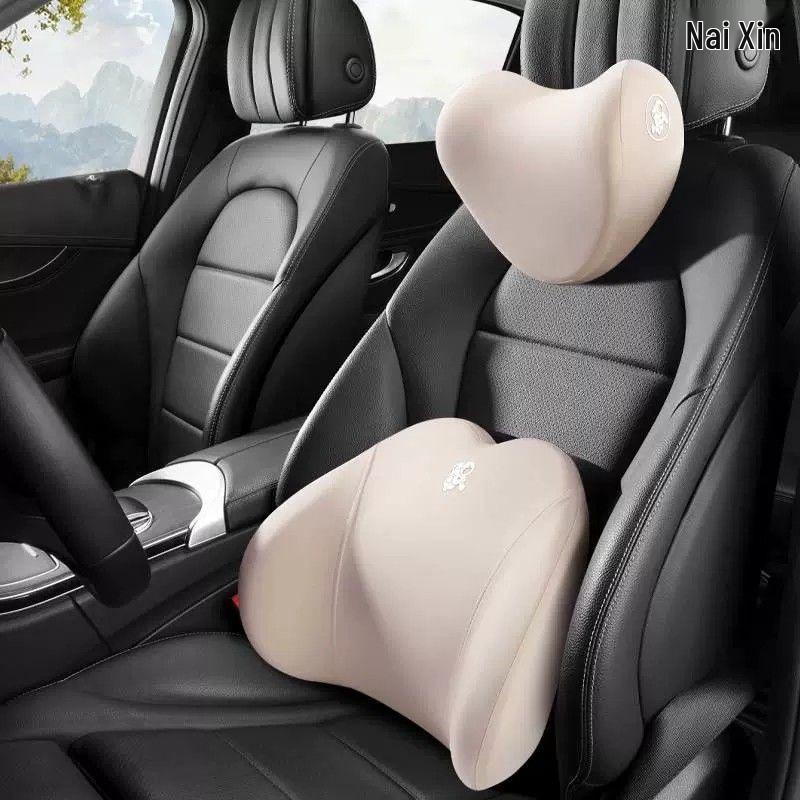 Car Neck and Lumbar Support Memory Foam Pillow Set for Headrest - High-Grade Interior Accessory