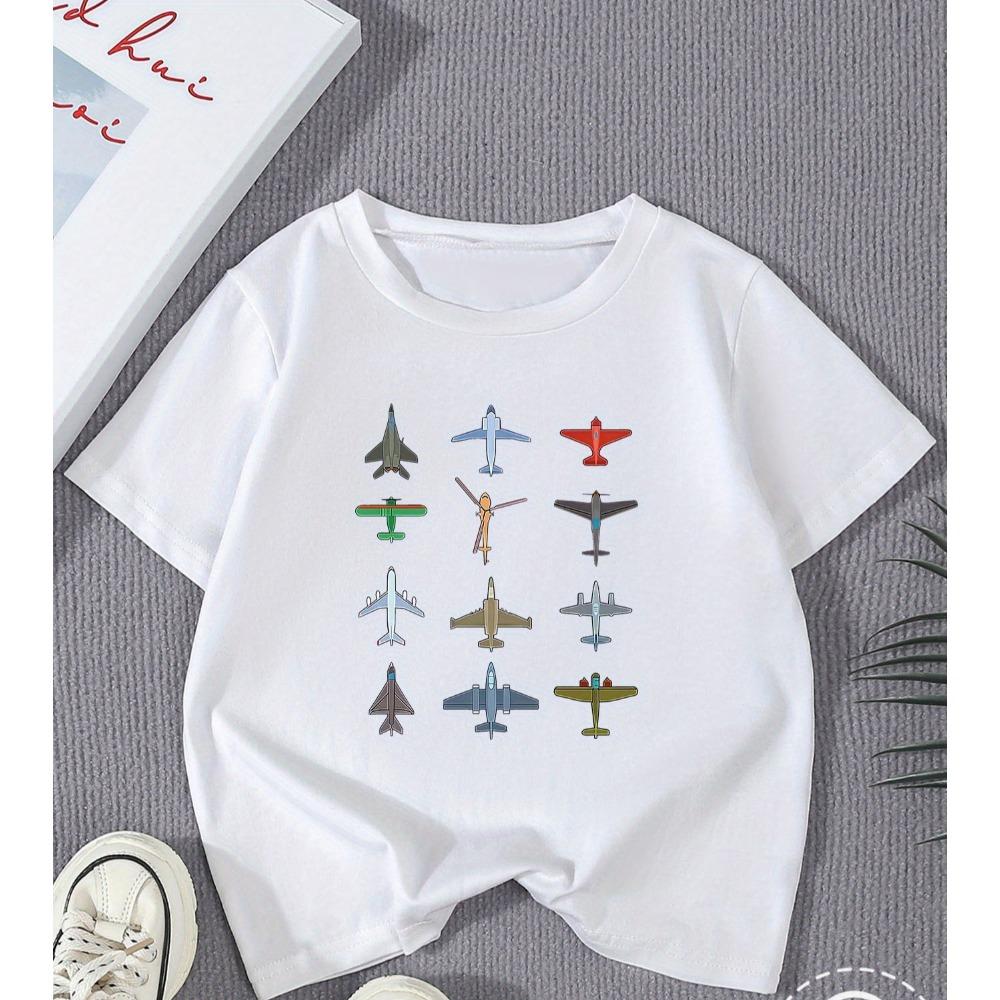 Young Boy Toy Airplane Print Fashionable Casual T-shirt Soft Comfortable Summer Kid Round Neck Short Sleeve T-shirt Clothing