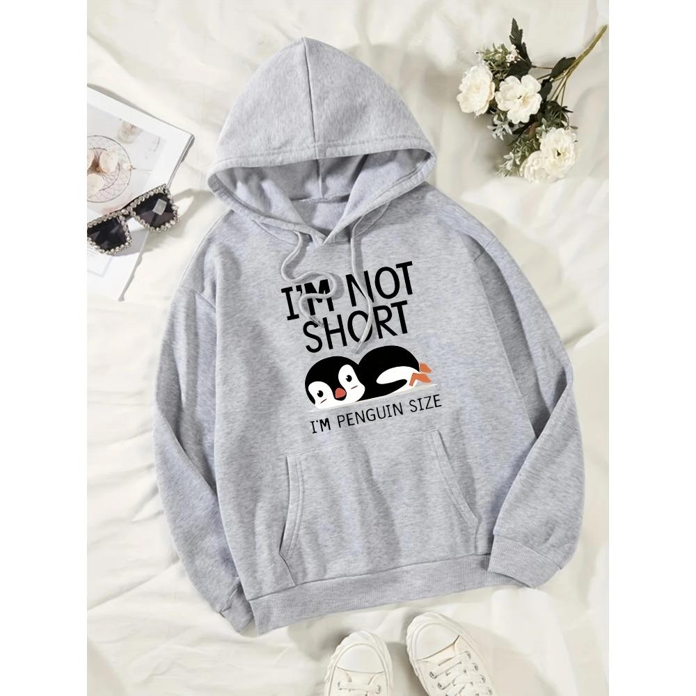I am not short I am a penguin printed women's hooded fashionable and cute basic casual plus plush warm hoodie.