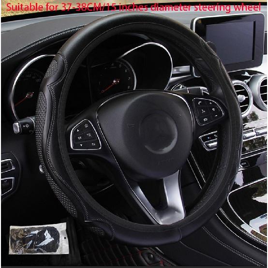 Leather Car Steering Wheel Cover Breathable Anti-Slip 15''/38cm Black Universal