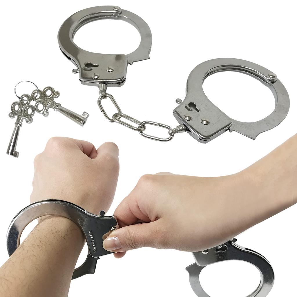 Under Realistic Toy Handcuffs with Lock and Safety Fun for Police and Banquets of You're Arrest! Handcuffs, Clasp, Silver, Adjustable, Cosplay,
