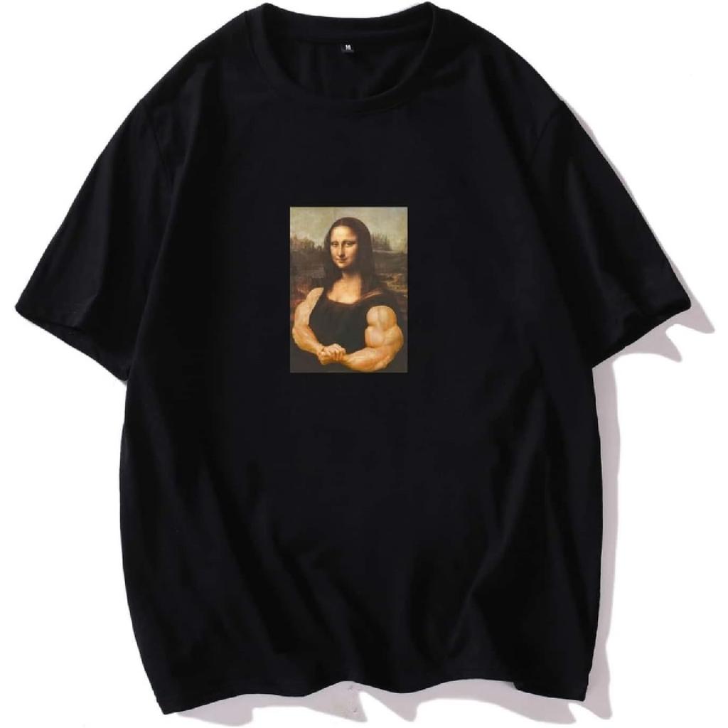 Men's T-Shirts Men Mona Lisa Graphic Round Neck Tee T-Shirts for Men (Size _ Small)