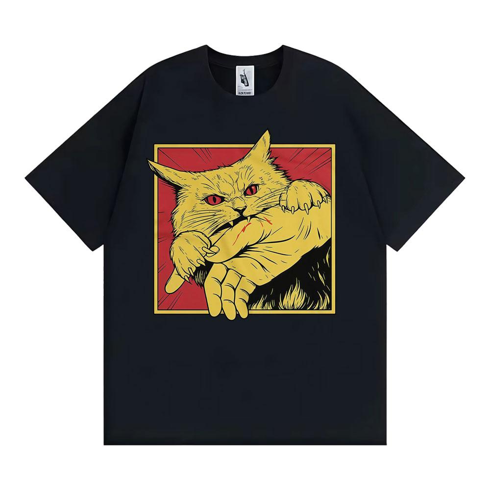 Angry Cat Biting Hand Funny Meme Tee Shirt Unisex Fashion Vintage Oversized T Shirt Men Summer Tops High Quality Cotton Tshirts