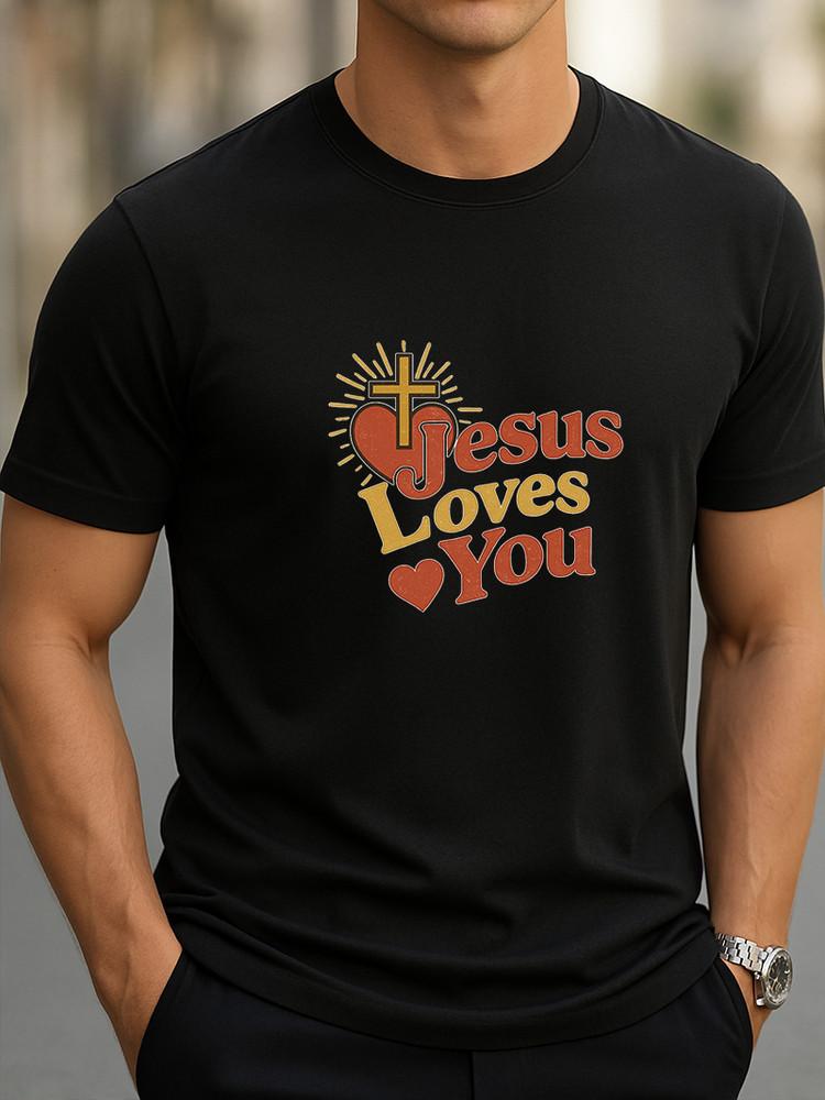 Jesus Loves You T-Shirt Retro Christian Graphic Tee with Heart & Cross Faith Tee Unisex T-Shirt