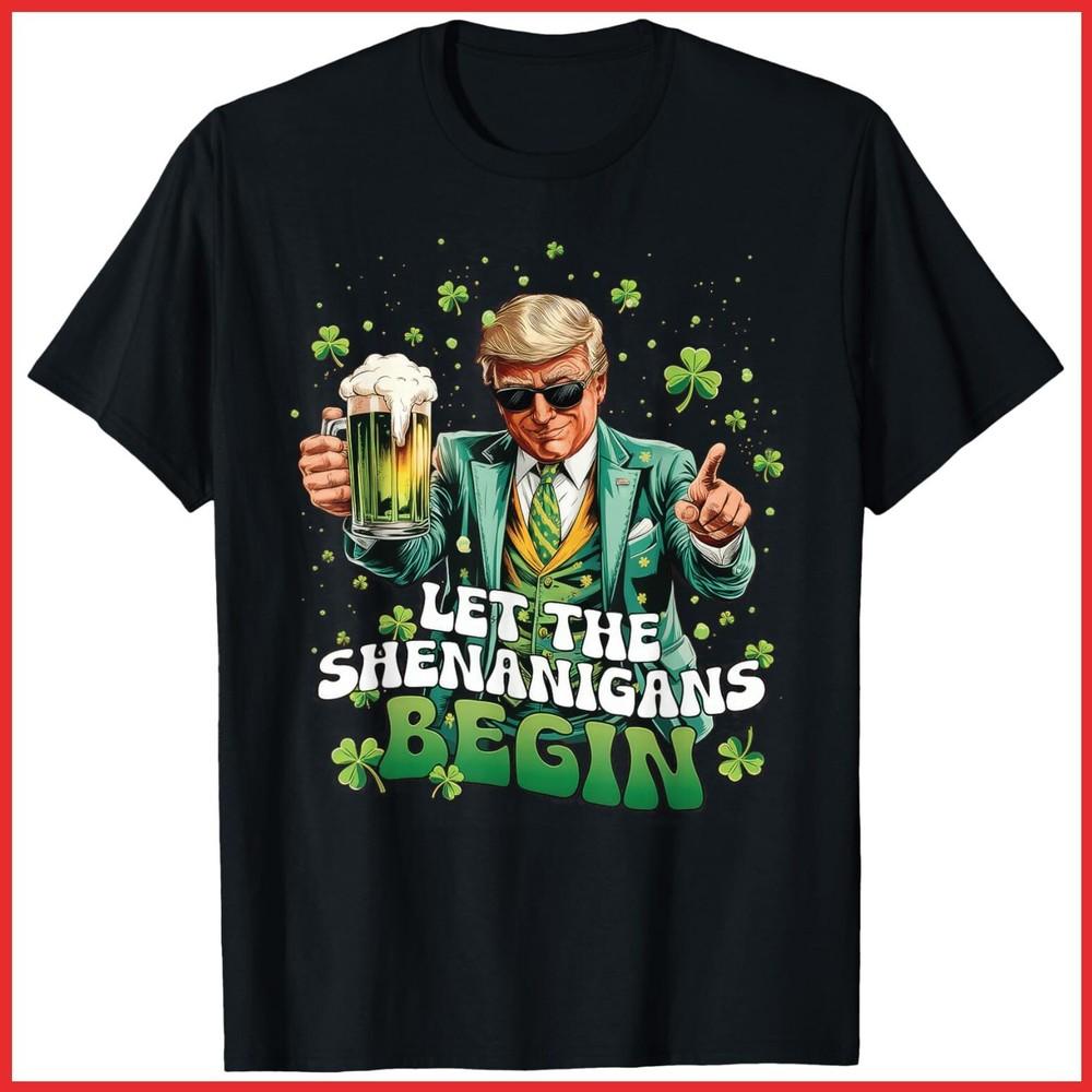 Let The Shenanigans Begin Trump St Patrick's Day Black Cotton T-Shirt Unisex T-Shirt