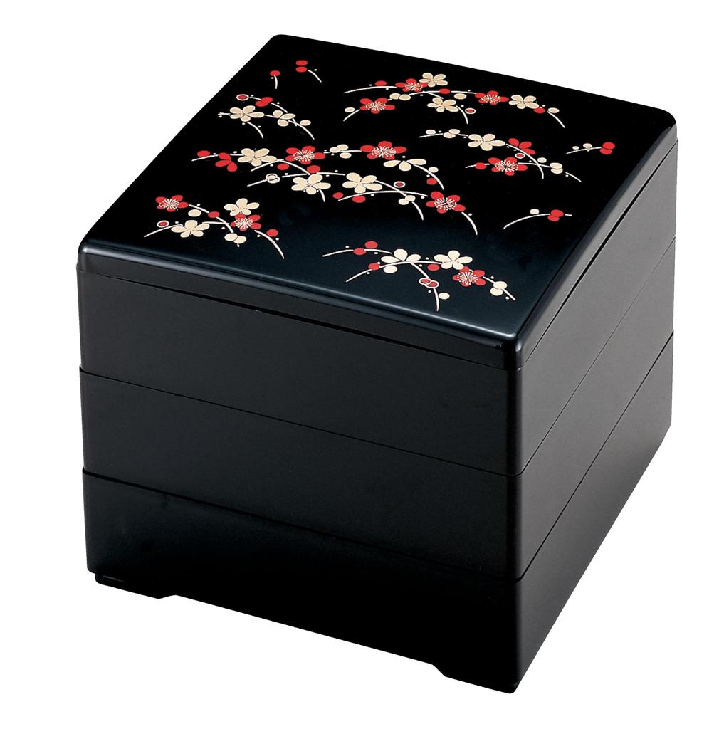 Wakaizumi Jubako Czarny Wzór Kwiatu Śliwy 3 Lakierowane Pudełko, 6,5 cala, (Czarne wnętrze), Poziomy, H-156-5A