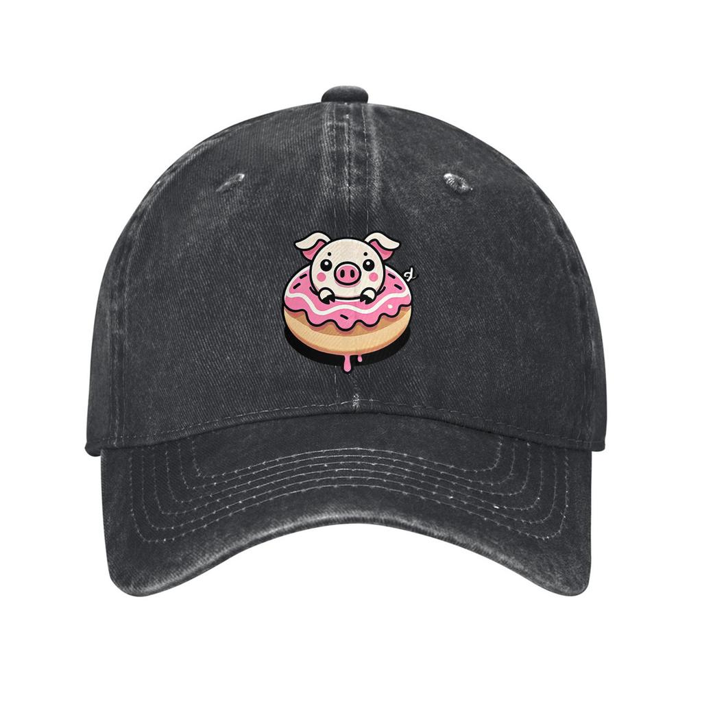 Cute Pig in Donut Graphic Baseball Cap Cotton Adjustable Dad Hat Casual Sun Protection Unisex