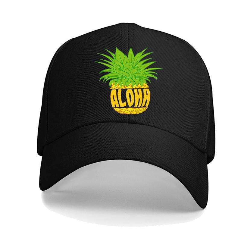 Aloha Pineapple Print Baseball Cap Casual Polyester Adjustable Snapback Hat for Unisex Beach Travel