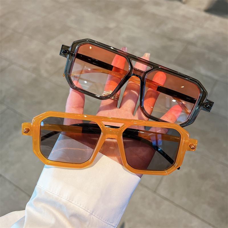 Vintage Square Sunglasses for Men Retro Double Bridge Male Sun Glasses Trendy Brand Design Shades