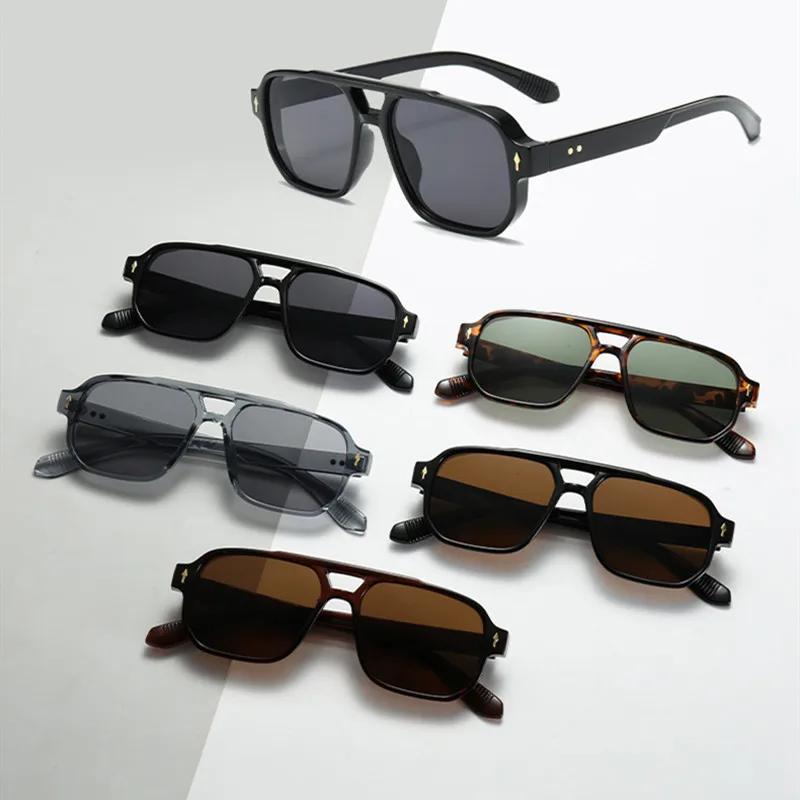 Retro Double Bridges Square Sunglasses Women Gradient UV400 Fashion Designer Rivets Men Sun Glasses Travel Eyewear
