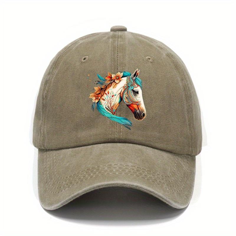 Artistic Horse Head Floral Print Baseball Cap Distressed Denim Snapback Hat Casual Outdoor Headwear