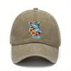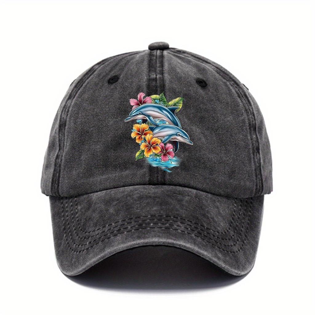 Dolphin Hibiscus Graphic Washed Baseball Cap Unisex Polyester Casual Outdoor Adjustable Hat