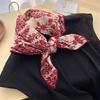 Women's Retro Floral Silk Cotton Scarf: Black Rice Square, Hair Band, Neck Warmer, Headscarf - Spring/Summer.