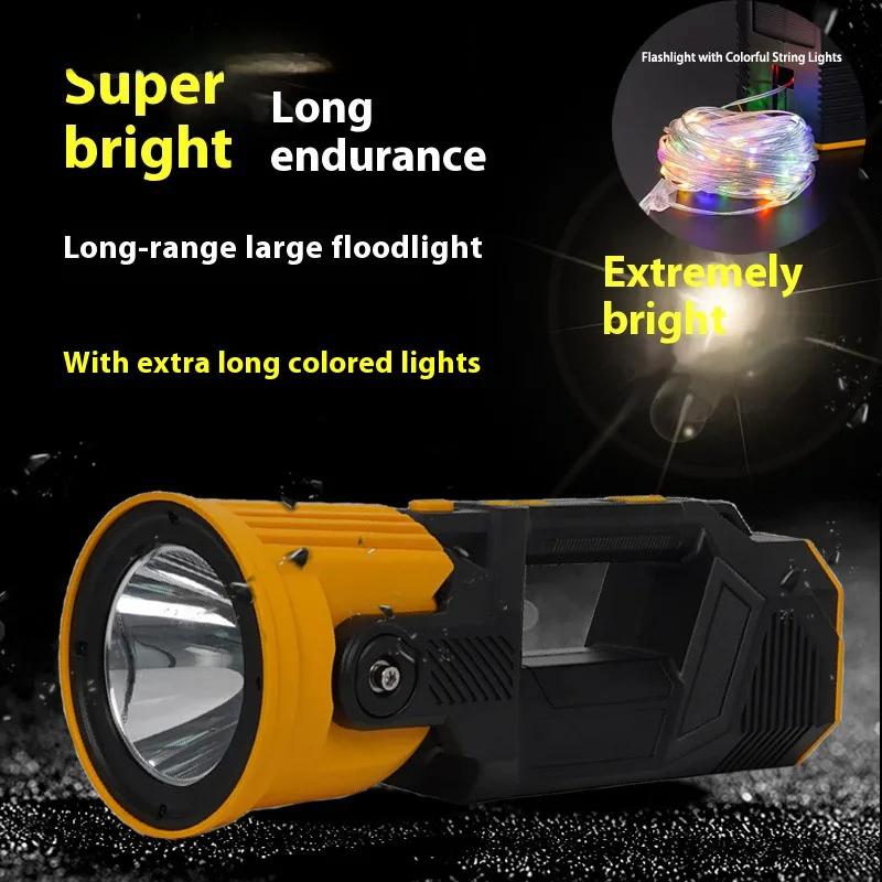 High Power LED Searchlight Multifunctional Torch Head 90° Rotatable With Colorful Strip Light Outdoor Camping Light