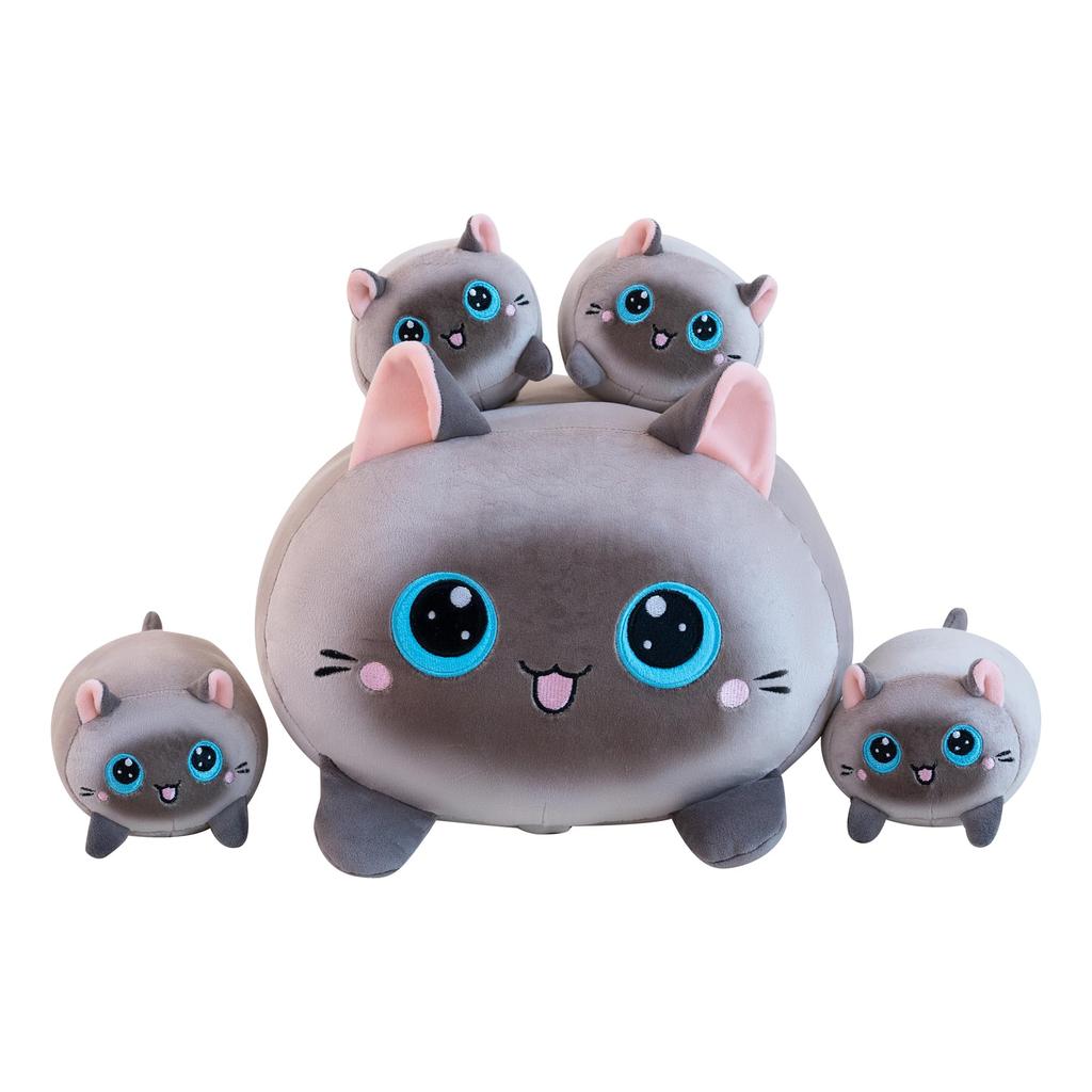 Cat Plush Toy - Mama Cat and Four Kittens - Cat Plush Toy, Cat Body Pillow, Squishy Animal, Birthday Gift, Boys, Girls, Christmas Gift (GRAY CAT,