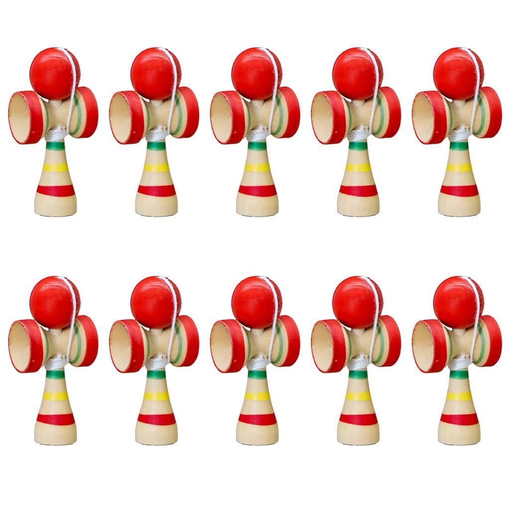 Miniature Japanese Traditional Wooden Kendama Toy (6.5cm H x 3cm W x 2cm D) Set of 10 for Commercial Use