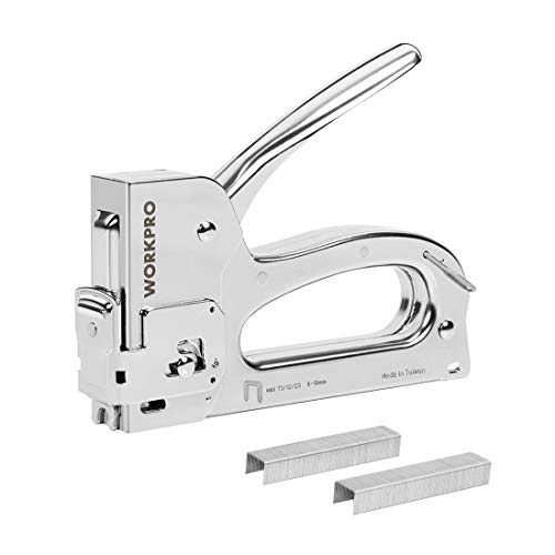 WORKPRO Staple Gun, Hand Stacker, Made in Taiwan, Cable Stacker with Handle Lock, 3-in-1 Design, Includes 200 Replacement Staples, for Woodworking, DI