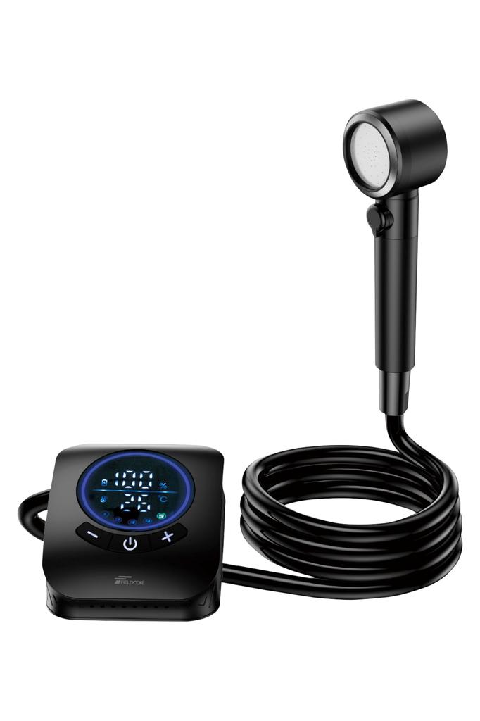 FIELDOOR Elektryczny Przenośny Prysznic, Ładowany przez USB, Regulowany Strumień Wody, Kompatybilny z Gorącą Wodą, z Uchwytem, do Aktywności na Świeżym Powietrzu jak Plaża, Surfowanie