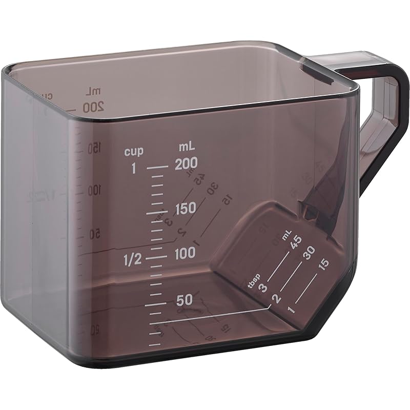 Miarka Wieżowa Yamazaki, Czarna, 10,5 cm Szer. x 6,3 cm Gł. x 6,5 cm Wys., 200 ml, Bezpieczna w zmywarce i kuchence mikrofalowej, Odporna na ciepło, Wykonana z Tritanu, Produkt