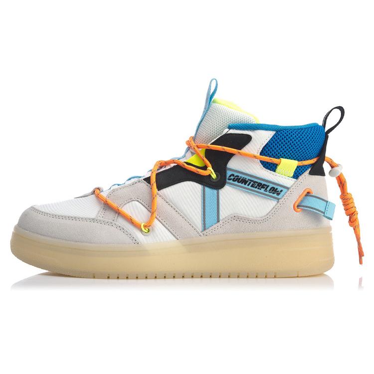 Li Ning Slip Resistant, Abrasion Resistant, Lightweight Mid top Skateboard Shoes Men's Gray White Blue AGCQ127-4
