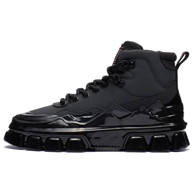 Li Ning CF Tracing Lingjun Cow Leather Slip Resistant Abrasion Resistant High top Skateboard Shoes Unisex Black AGCR488-2