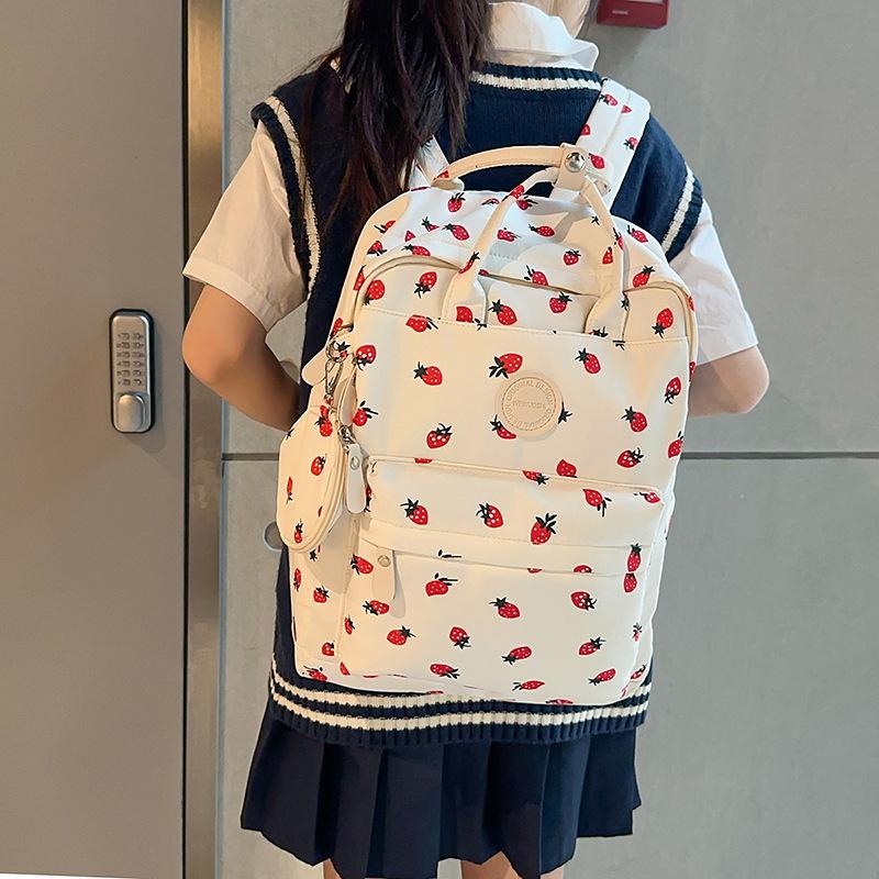New backpack small backpack girls' elementary school junior high and high school student school bag nylon cute strawberry print backpack girl