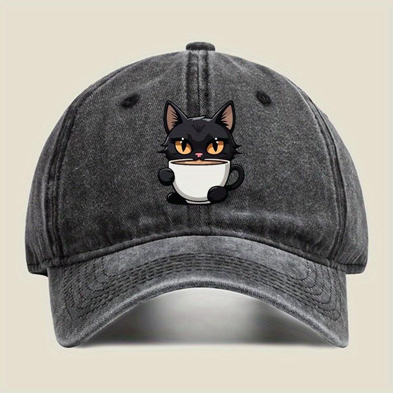 Unisex retro style baseball cap, cute cat cup design, hip-hop suitable for outdoor fishing and travel