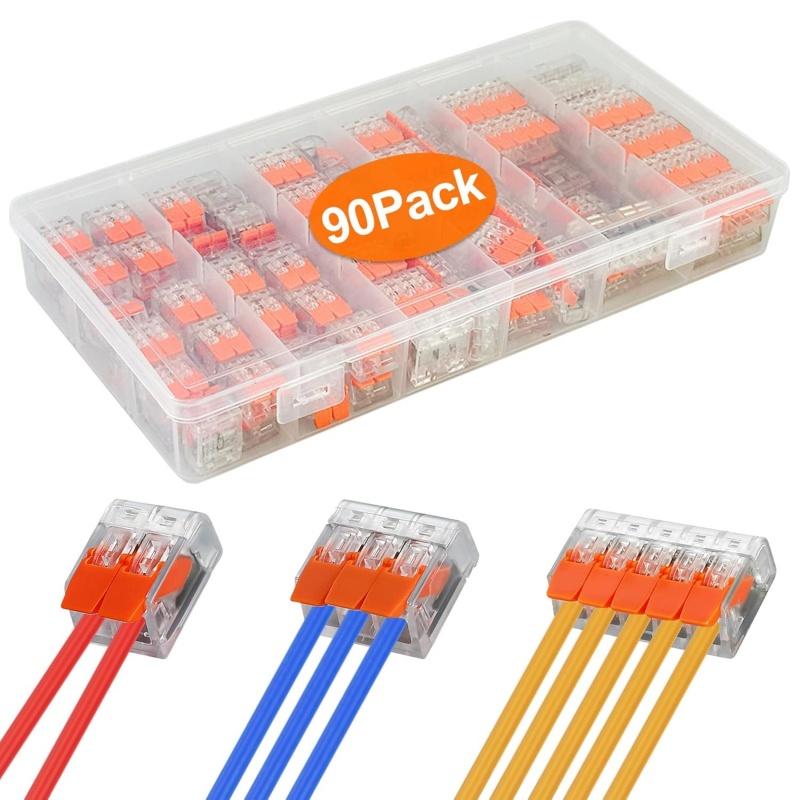 90pcs Lever Wire Connectors 2/3/5-Port Quick Splicing Terminal Block Electrical