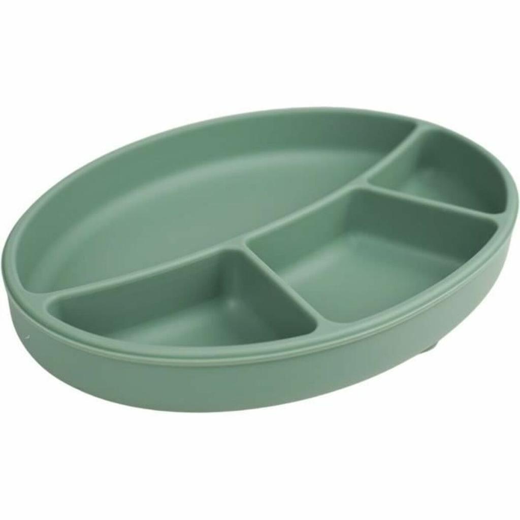 Lalabee silikonowa przyssawkowa tacka na jedzenie dla niemowląt, zielona, tacka na jedzenie + pokrywka na tackę na jedzenie, Popularne koreańskie artykuły dla rodziców