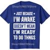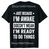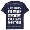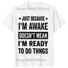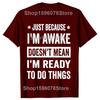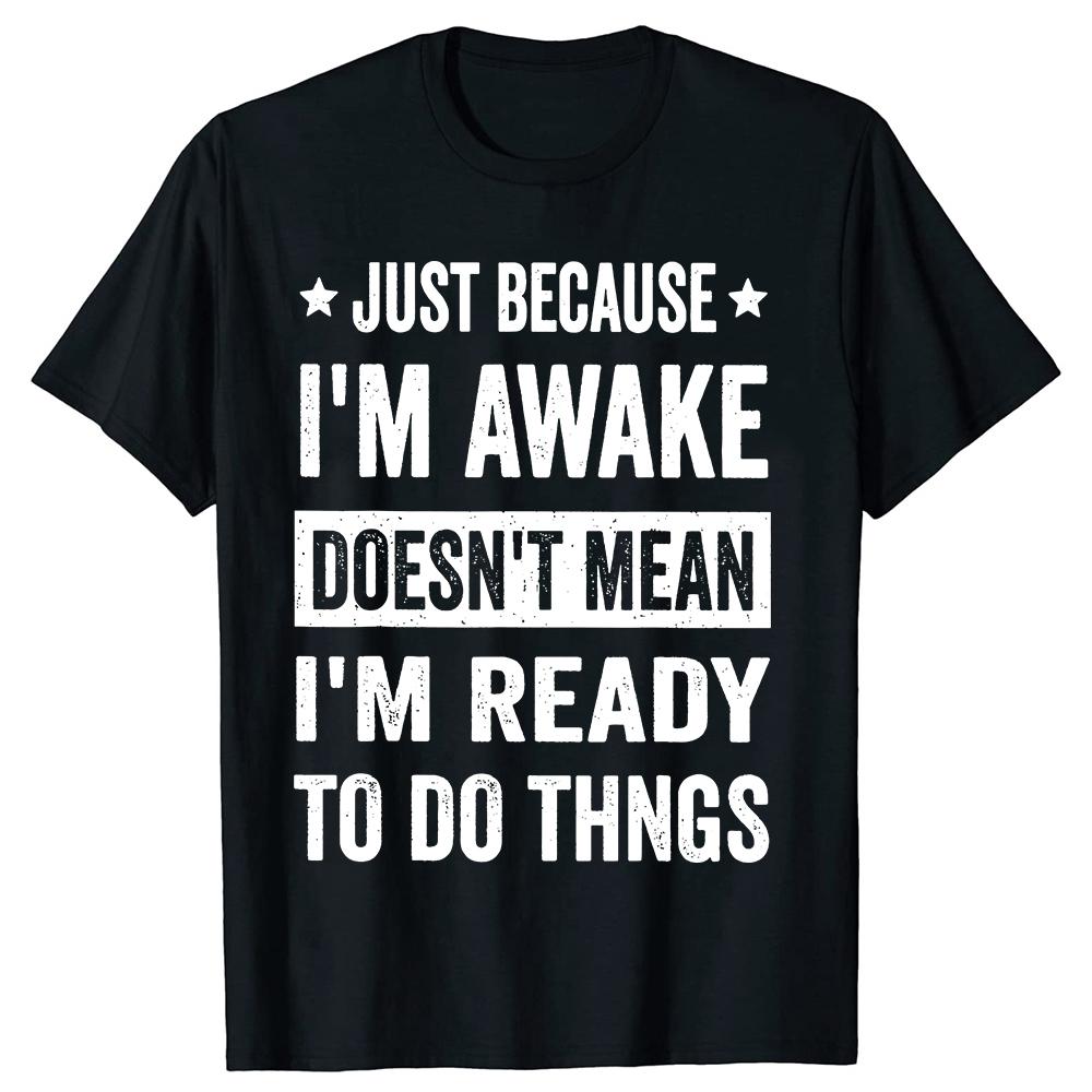 Funny Just Because Im Awake T Shirts Men Casual Cotton Humor Streetwear Tee Shirt Short Sleeve Unisex Loose Crewneck Clothing